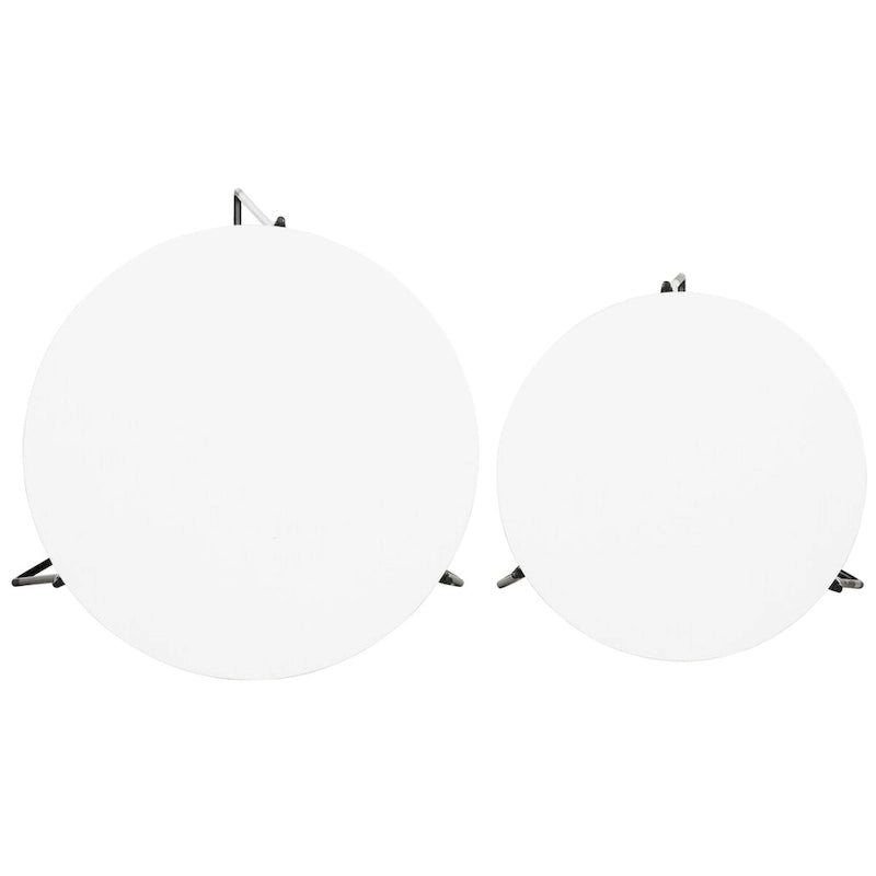 A designer favorite, these Stacking End Tables are effortlessly versatile with their Mid Century inspiration. This piece's solid iron base features an elegant linear style balanced by the palette of its smooth circular tops.